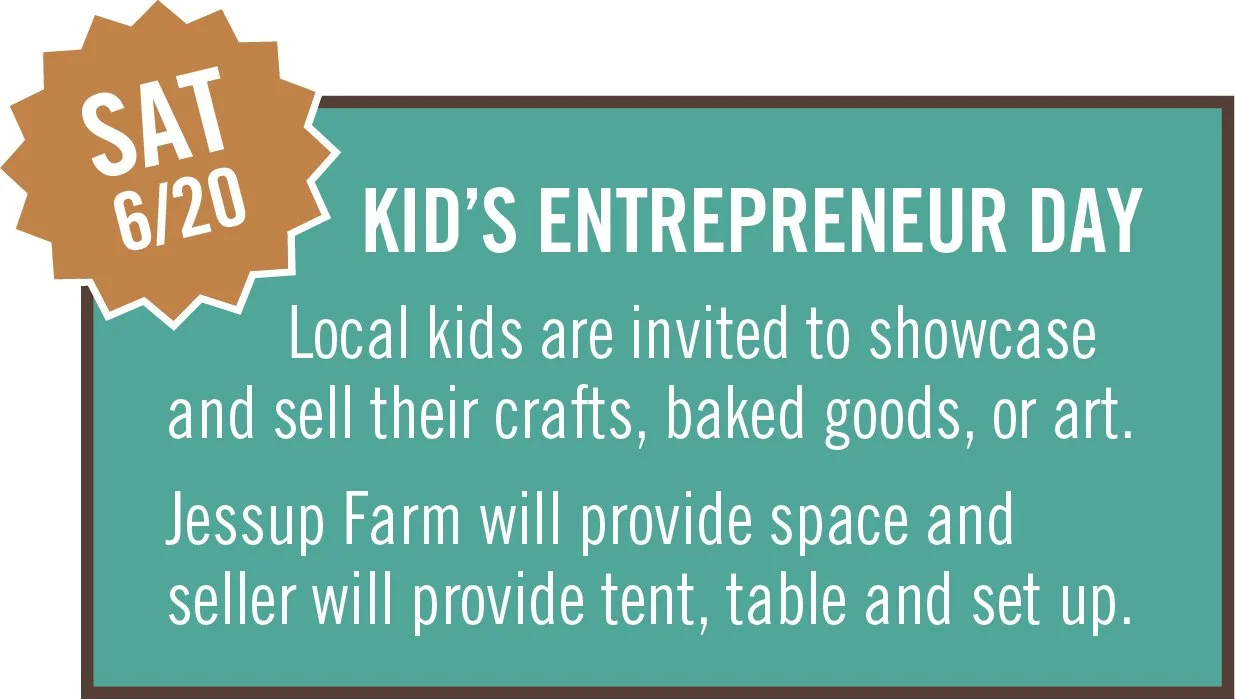 Support the next generation of creators and makers at Jessup Farm’s Kid’s Entrepreneur Day on Saturday, June 20. Local kids are invited to showcase and sell their own creations — from crafts and artwork to baked goods and handmade items.